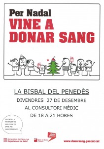Sanitat Vine a donar sang admin 13/12/2013 Per Nadal vine a donar sang a la Bisbal del Penedès, el 27 de desembre al Consultori Mèdic de 18 a 21 hores