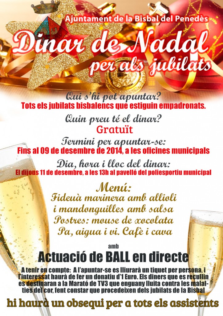 Us esperem en aquest dinar de germanor que hem preparat únicamente per a vosaltres, tots els bisbalencs jubilats i empadronats al municipi.