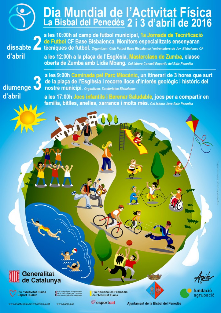 Per setè any consecutiu el Pla d’Activitat Física, Esport i Salut (PAFES) s’afegeix a Agita Mundo i l’ OMS per a celebrar el Dia Mundial de l’Activitat Física. Enguany l’Ajuntament de la Bisbal i diferents entitats del municipi hem organitzat un seguit d’actes per aquest dissabte dia 2 i diumenge dia 3 que tenen com a denominador comú l’esport, l’activitat física i la salut.