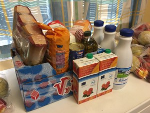 Cada dijous un grup de cinc voluntàries i un voluntari, juntament amb la Regidora de Benestar Social, Maguy Antolín, preparen el contingut de les bosses que s’han de repartir (val a dir que la primera setmana de cada mes fan el voluntariat durant dos dies, el dimarts per preparar els aliments no peribles i el dijous per rebre i preparar els aliments frescos).
