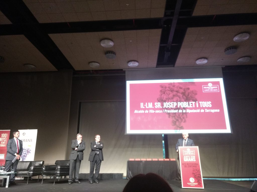 CASTELLANO | El pasado sábado 9 de junio se celebró un acto institucional, con motivo del centenario de Cellers Domenys, con el título de “Junts som grans” en el Centro de convenciones de Port Aventura. El acto contó con la participación de 500 personas de los municipios que forman parte de la cooperativa: Sant Jaume dels Domenys, la Bisbal del Penedès, Banyeres del Penedès, Rodonyà, Rocafort de Queralt, Blancafort y Pira. En concreto, de la Bisbal, asistieron unas cincuenta personas, entre ellas la alcaldesa de la Bisbal del Penedès, Agnès Ferré.