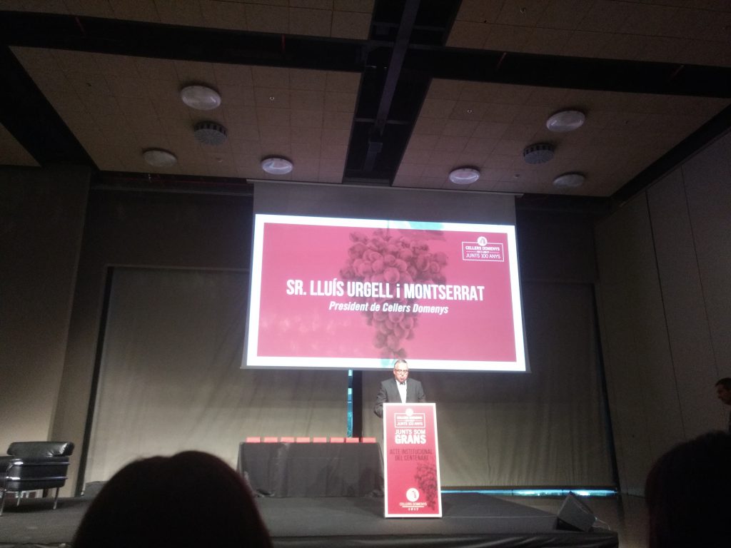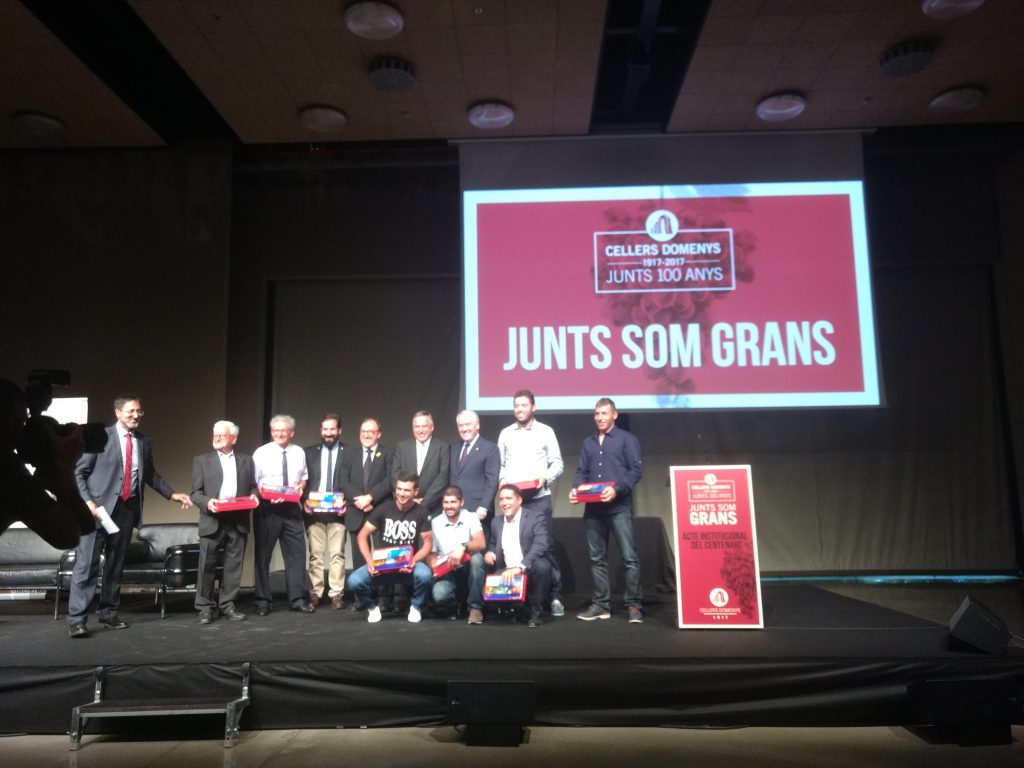El passat dissabte 9 de juny es va celebrar un acte institucional, amb motiu del centenari de Cellers Domenys, sota el títol “Junts som grans” al Centre de convencions de Port Aventura. L’acte va comptar amb la participació de 500 persones dels municipis que formen part de la cooperativa: Sant Jaume dels Domenys, la Bisbal del Penedès, Banyeres del Penedès, Rodonyà, Rocafort de Queralt, Blancafort i Pira. En concret, de la Bisbal, hi van assistir una cinquantena de persones, entre elles l’alcaldessa de la Bisbal, Agnès Ferré.