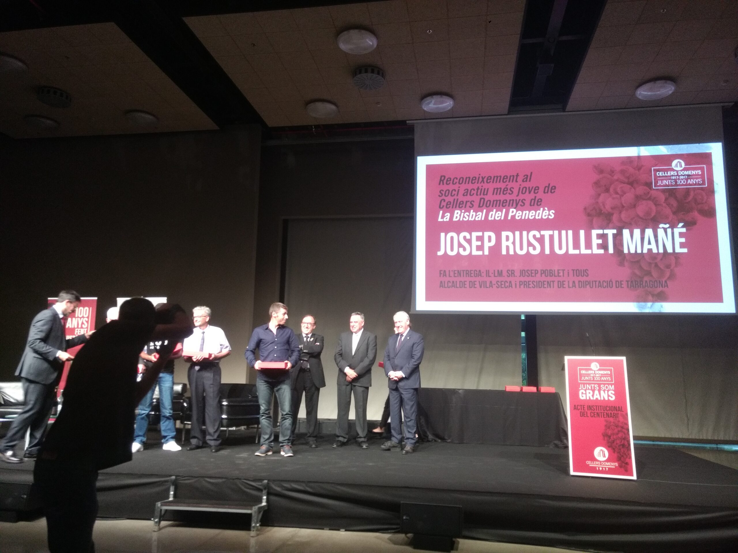 Després de diversos parlaments i de la participació d’algunes personalitats i autoritats del món del vi i del periodisme, es van entregar uns reconeixements als socis més joves de Cellers Domenys, entre els quals hi havia el bisbalenc Josep Rustullet i Mañé.