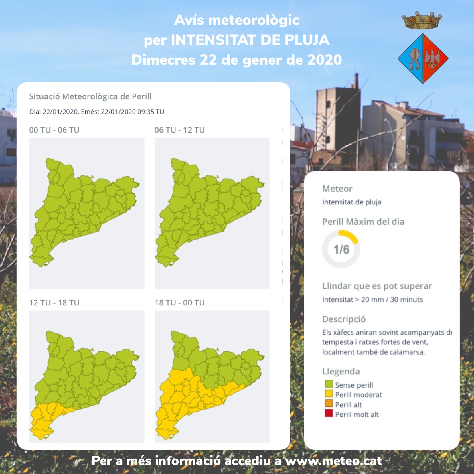 Avís per pluja per al dimecres 22 de gener i el dijous 23 de gener