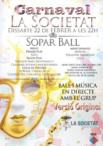 -Sábado 22 de febrero, a las 22h, cena en la Societat Cultural i Recreativa Bisbalenca y baile con el grupo Versió Original.