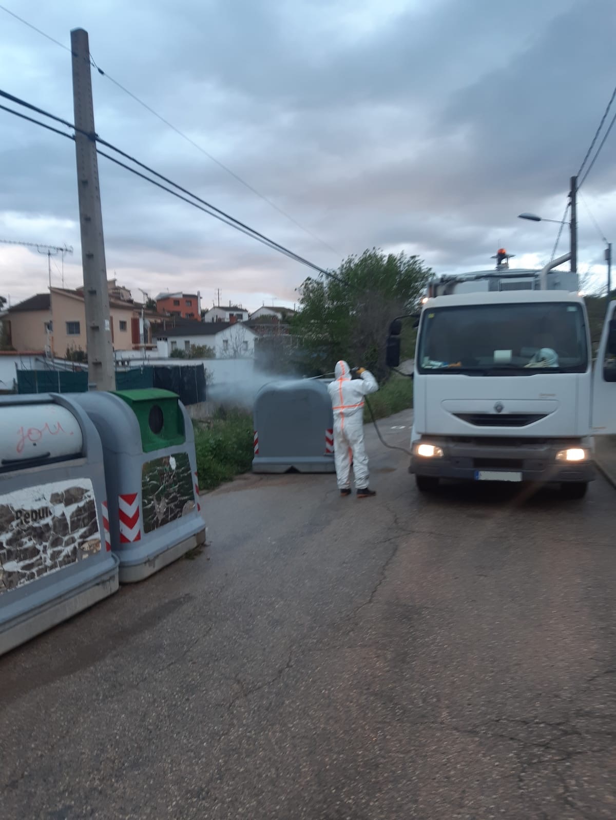 Continuen els treballs de desinfecció de les zones del municipi amb més afluència de persones i de les illes de contenidors