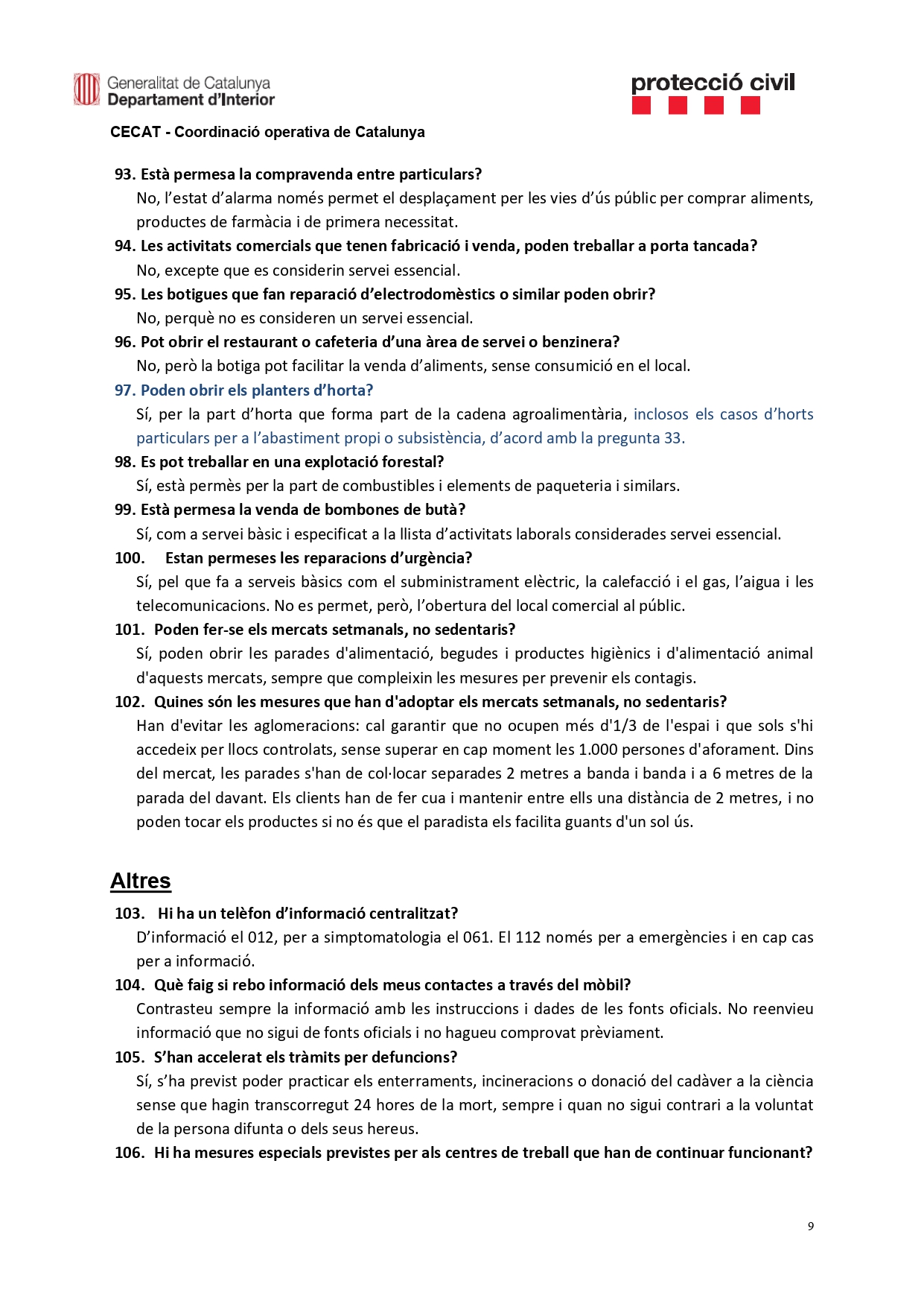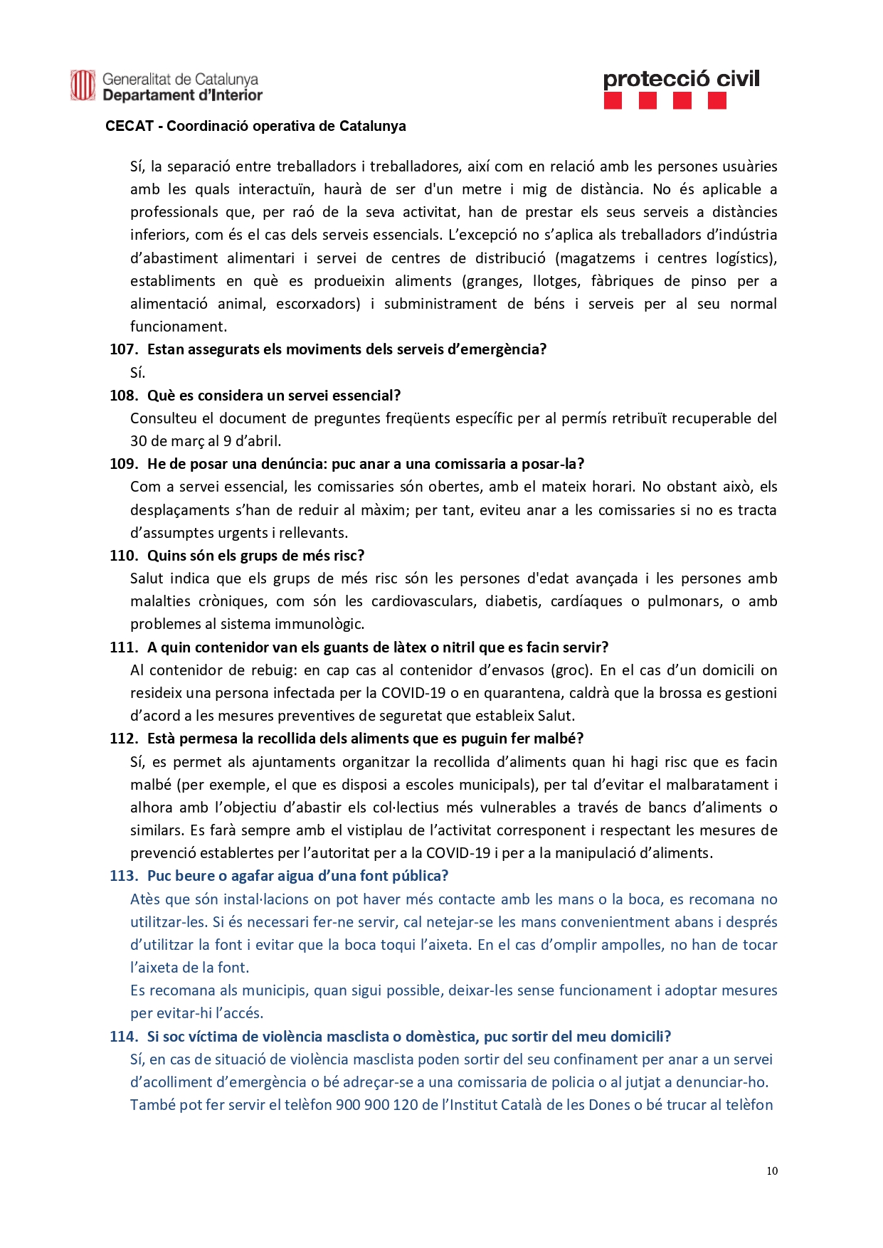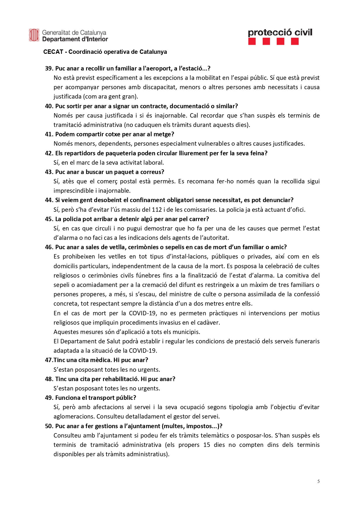 Les preguntes freqüents sobre el coronavirus Covid-19 respostes des del Centre de Coordinació Operativa de Catalunya (CECAT).