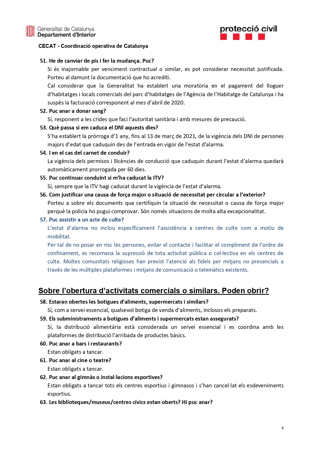 ¿Qué puedo hacer y qué no? Las preguntas frecuentes sobre el coronavirus Covid-19 respondidas desde El Centre de Coordinació Operativa de Catalunya (CECAT).