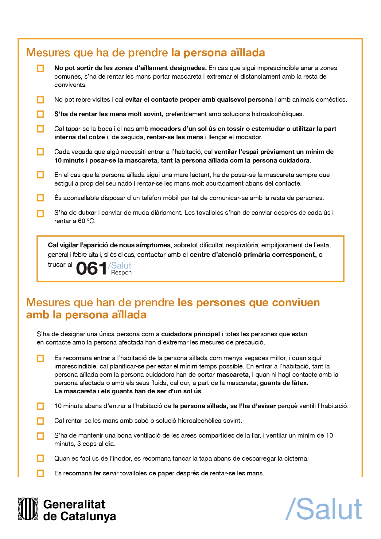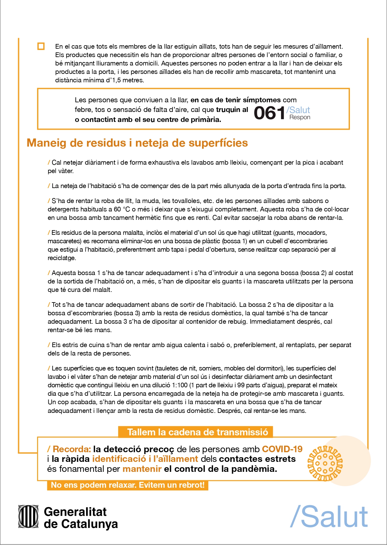 El Departament de Salut de la Generalitat de Catalunya informa que: