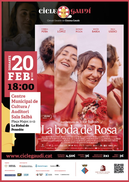 El dissabte 20 de febrer, a les 18h, projectarem la pel·lícula ‘La boda de Rosa’ del Cicle Gaudí, amb cinc nominacions als Premis Gaudí.