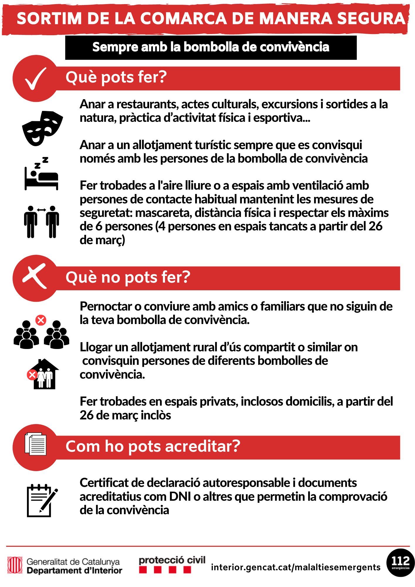 Si sortiu de la comarca, feu-ho només amb la bombolla de convivència i tingueu en compte aquesta infografia.