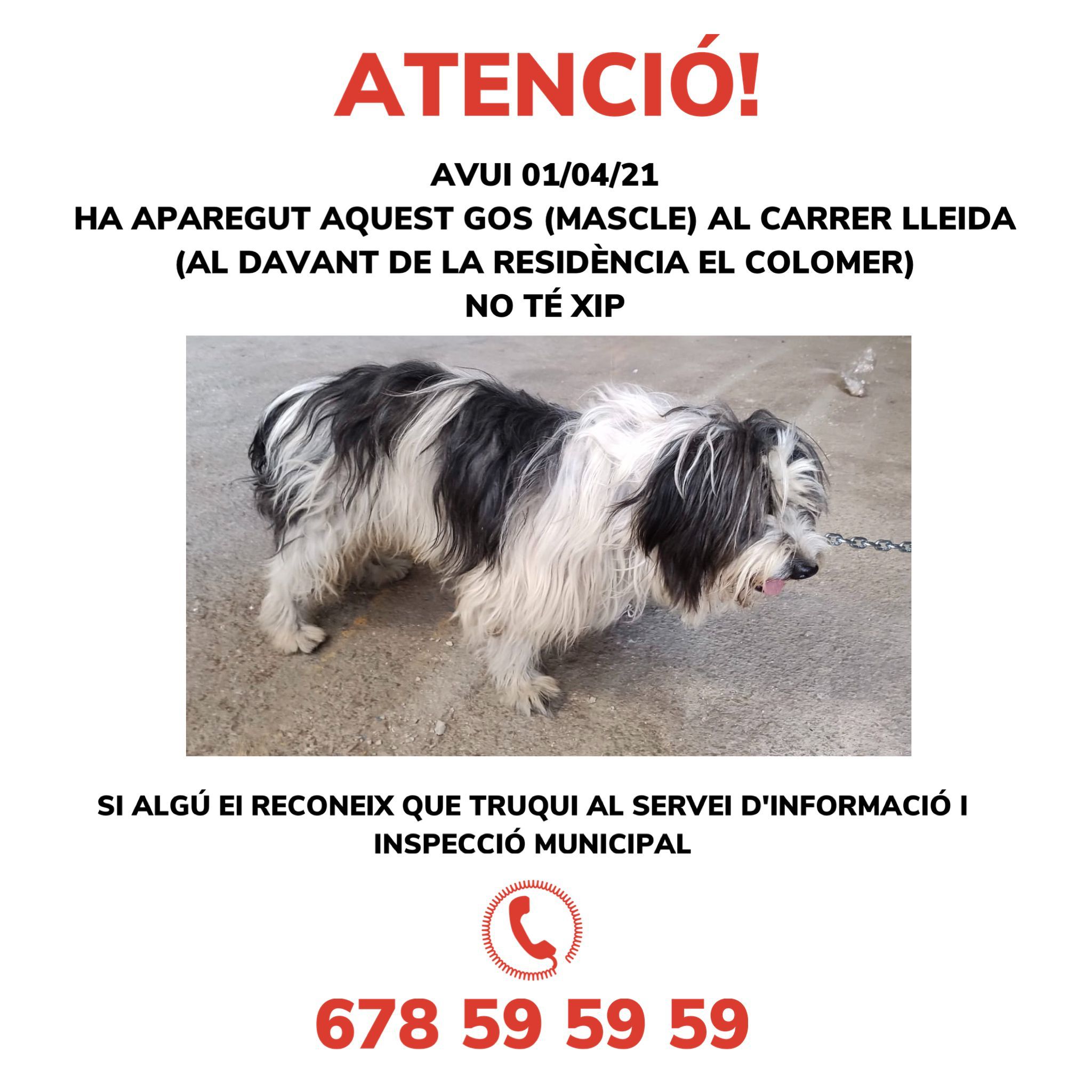 Ha aparegut aquest gos al davant de l’Ajuntament de La Bisbal del Penedès. Si el reconeixeu, truqueu al 678 59 59 59.