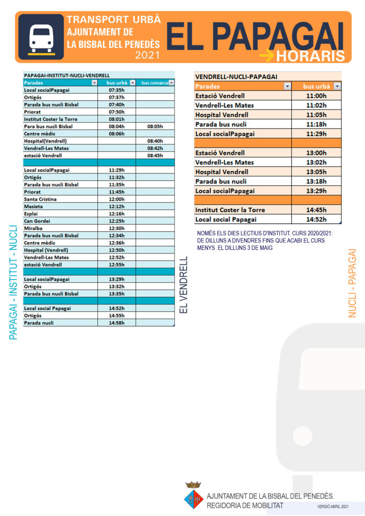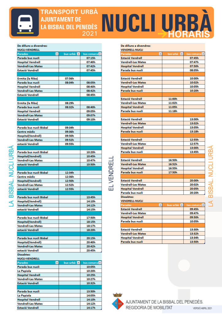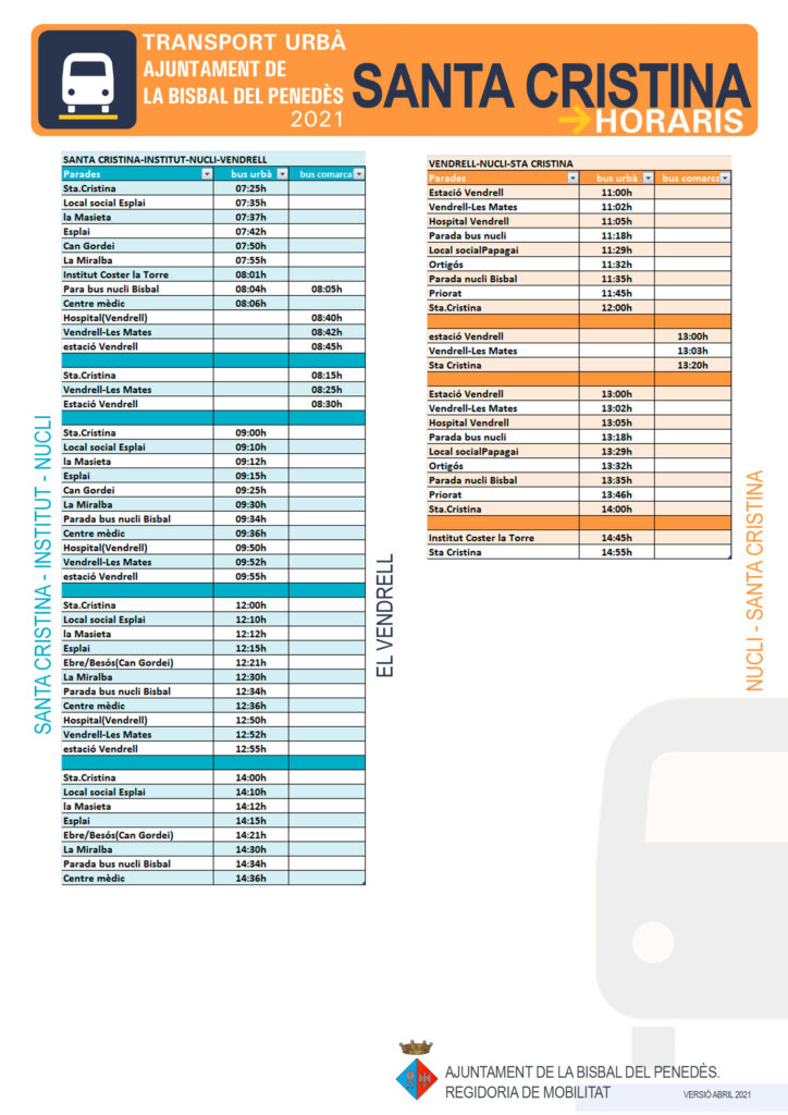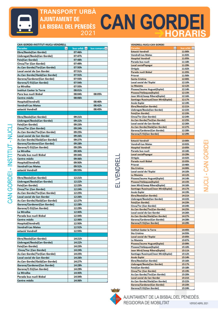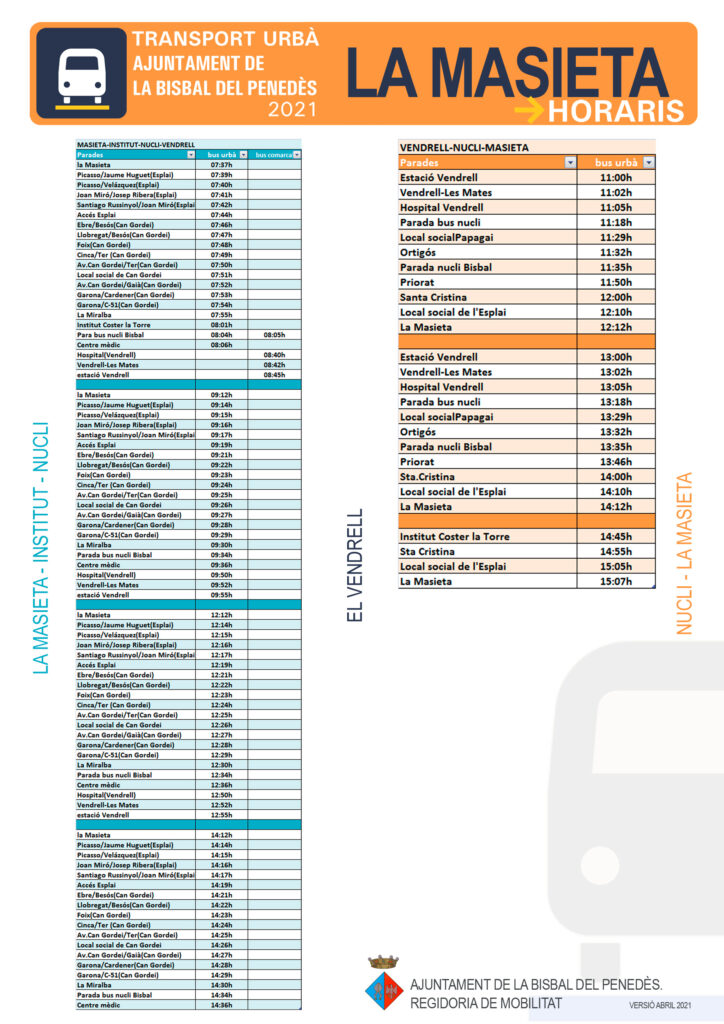Els veïns de les urbanitzacions rebreu els horaris i les parades a casa vostra durant aquesta setmana. També els trobareu adjunts a aquesta publicació.