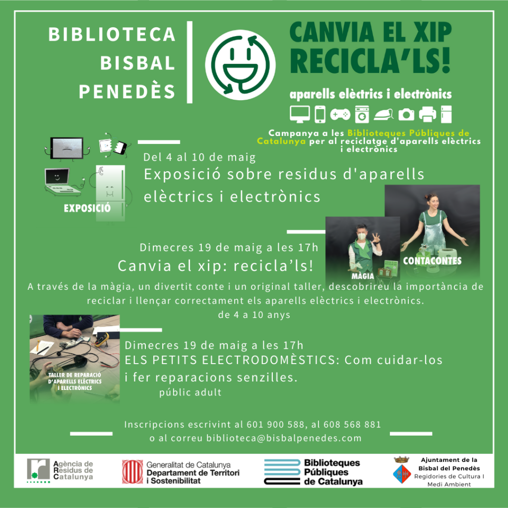 Fins a finals de la setmana vinent trobareu un contenidor per a reciclar petits aparells electrònics i electrodomèstics al CMC amb motiu dels actes programats en el marc de les activitats de la campanya a les Biblioteques Públiques de Catalunya per al reciclatge d’aparells elèctrics i electrònics.