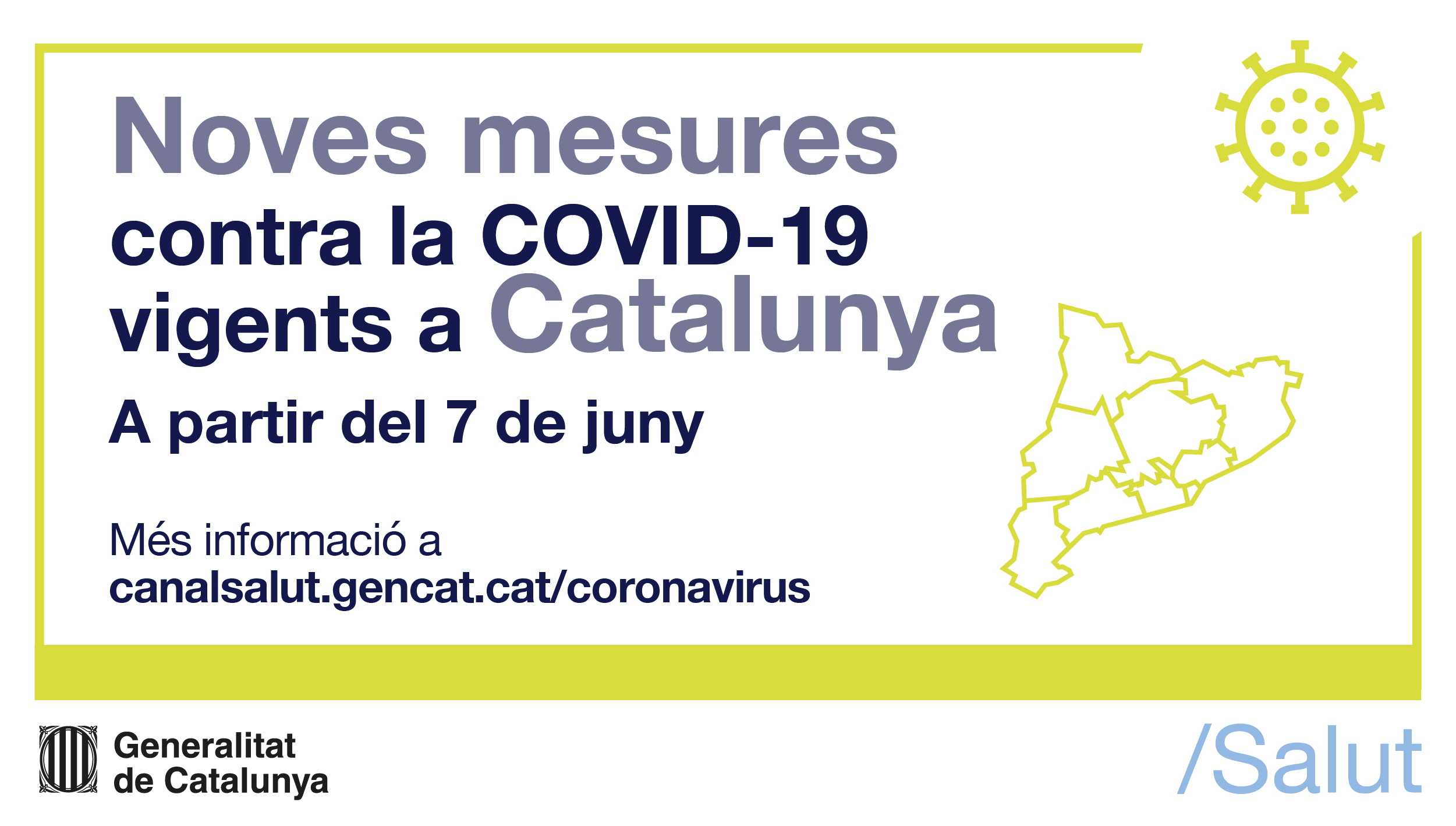 Aquestes són les mesures per la COVID-19 que han entrat en vigor avui dilluns 7 de juny. Per a més informació podeu accedir al web https://canalsalut.gencat.cat/ca/salut-a-z/c/coronavirus-2019-ncov/ciutadania/mesures/7-juny/