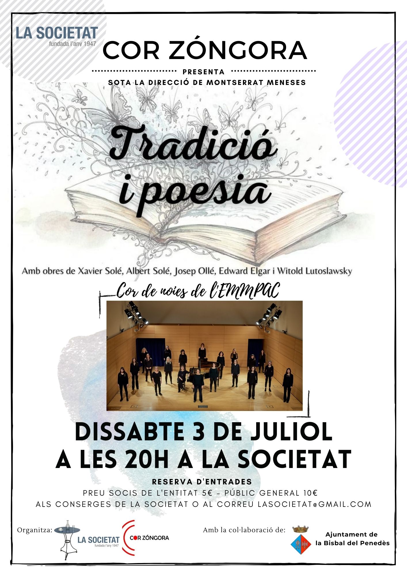 Venta de entradas: en la consergería de la Societat o en el correo electrónico: lasocietat@gmail.com