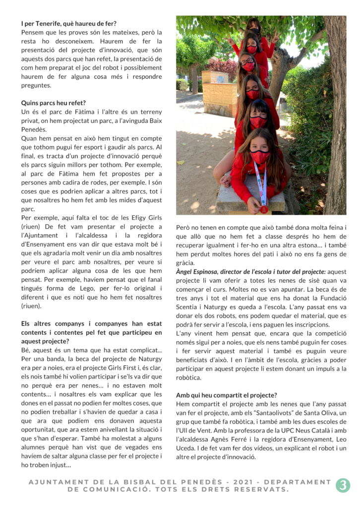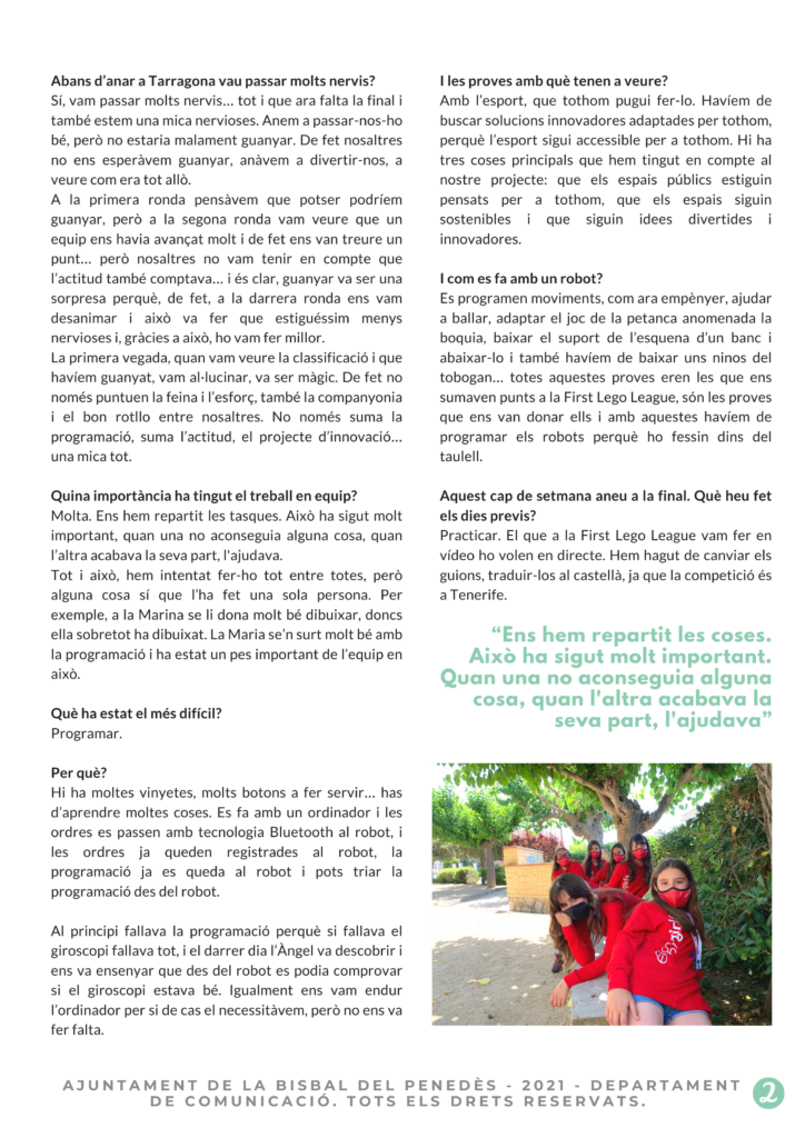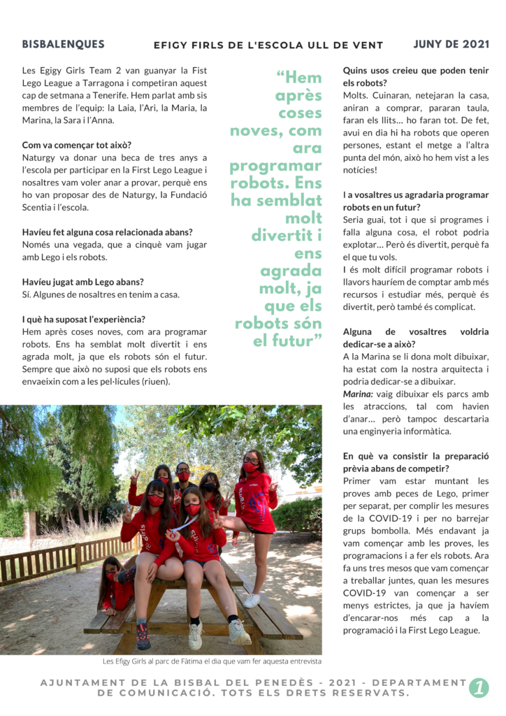 Les Efigy Girls Team 2 van guanyar la First Lego League a Tarragona i competiran aquest cap de setmana -de forma telemàtica- a la final, que es farà a Tenerife. Hem parlat amb sis membres de l’equip: la Laia, l’Ari, la Maria, la Marina, la Sara i l’Anna.