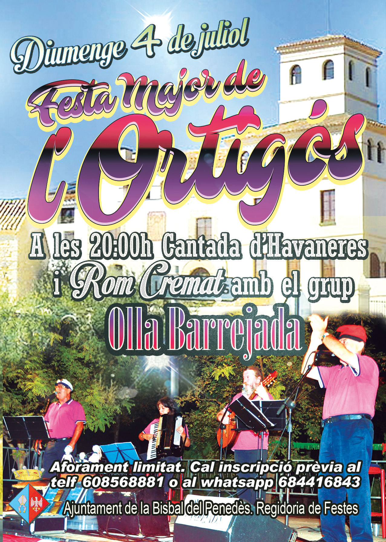 El domingo 4 de julio, a las 20h, podréis disfrutar de la Fiesta de l’Ortigós con la actuación del grupo de habaneras Olla Barrejada y la degustación de ron quemado.El aforo será limitado y hay que inscribirse previamente llamando al 608568881 o por Whatsapp al 684416843.
