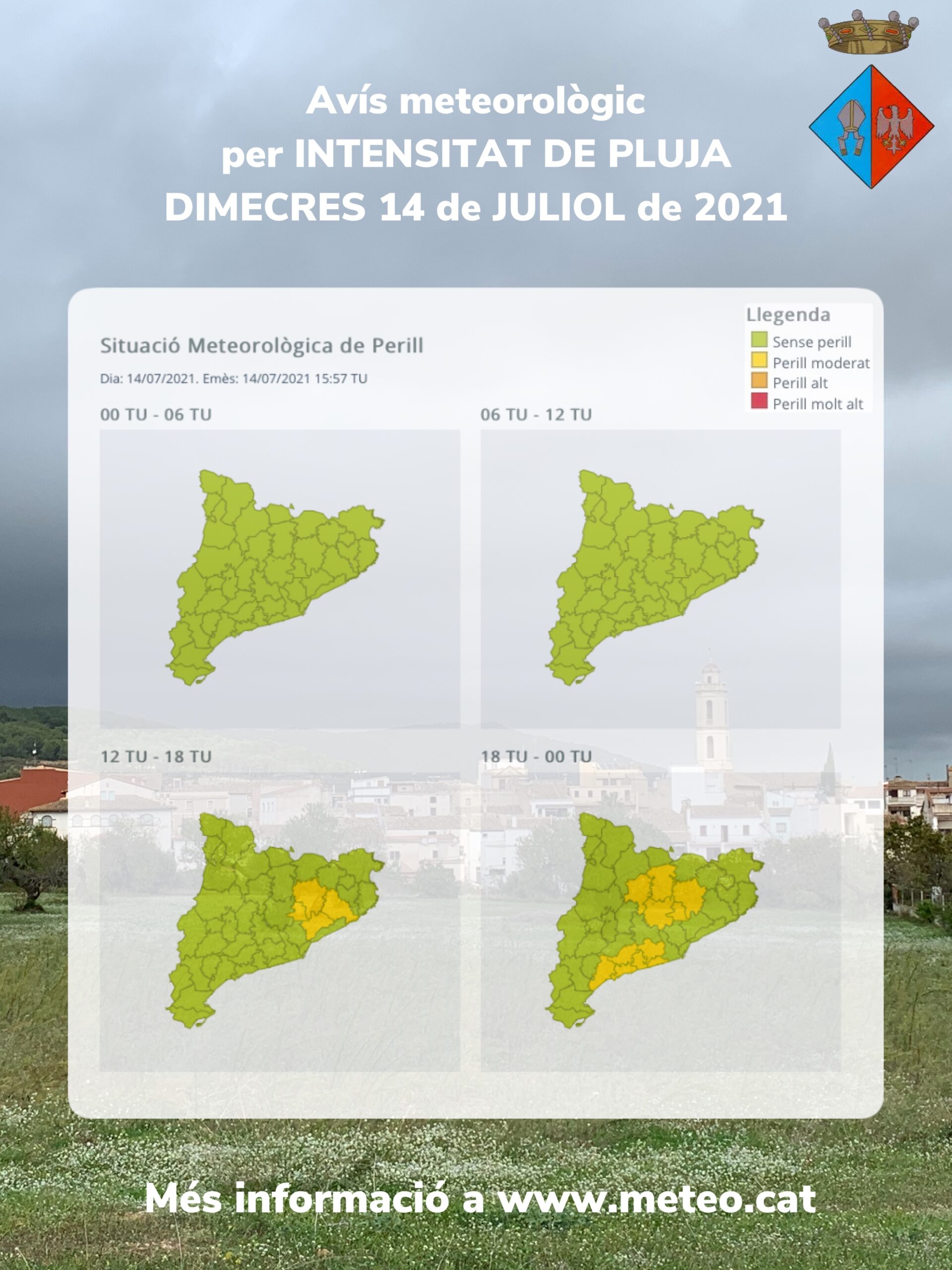 Activat un avís per intensitat de pluja, possiblement acompanyada localment de tempesta. Extremeu les precaucions.