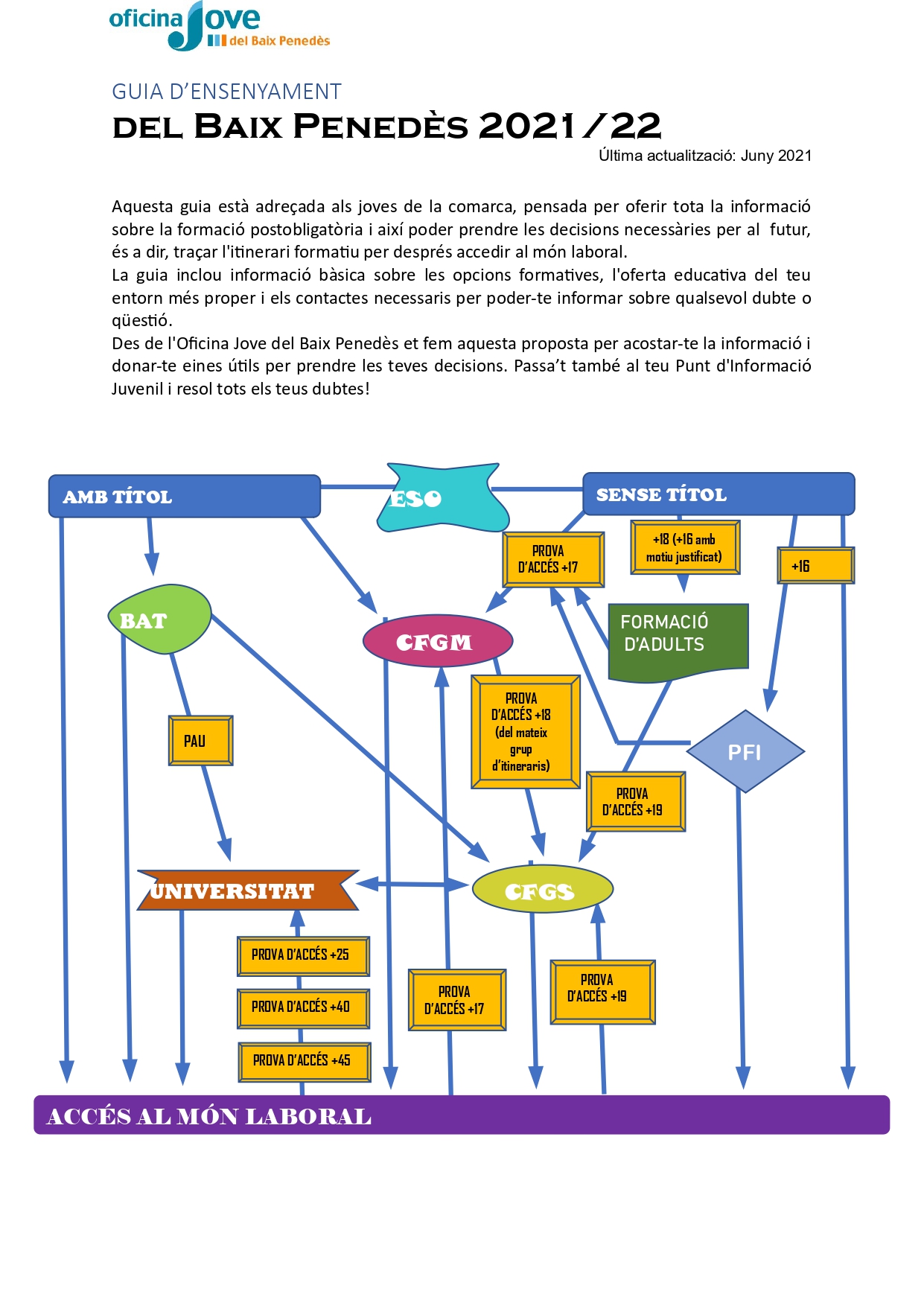 ¿Conoces la guía de educación del Baix Penedès 2021/22? Se trata de una guía dirigida a los jóvenes para que encontréis en ella toda la información sobre la formación postobligatoria. La guía incluye: