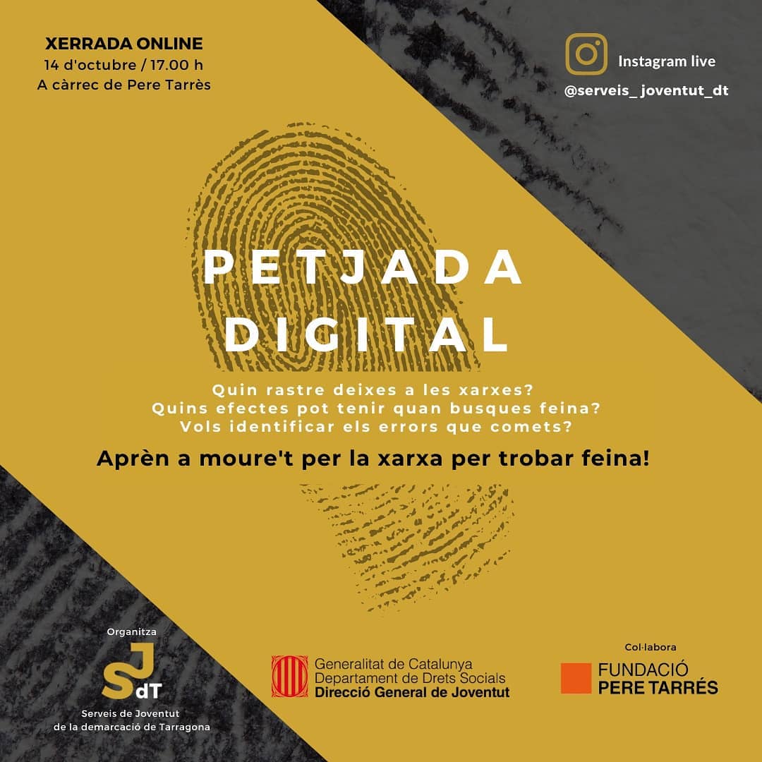 El proper dijous 14 d’octubre a les 17h es farà un taller virtual per a joves dedicat a la “petjada digital”
