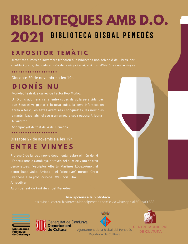 Aquest novembre torna a gaudir de les activitats del cicle ‘Biblioteques amb DO’ a la Biblioteca de la Bisbal del Penedès