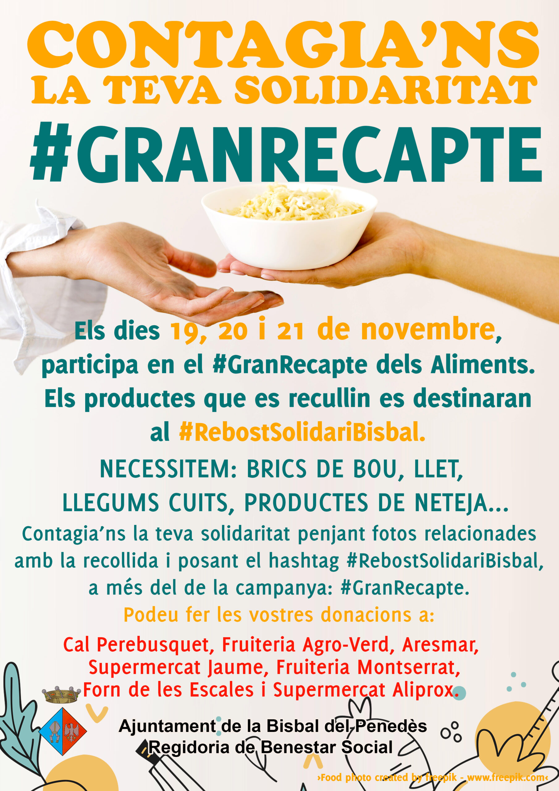 Los días 19, 20 y 21 de noviembre, visita el comercio bisbalense y participa en el Gran Recapte dels Aliments. Los productos que se recojan se destinarán al Rebost Solidari.