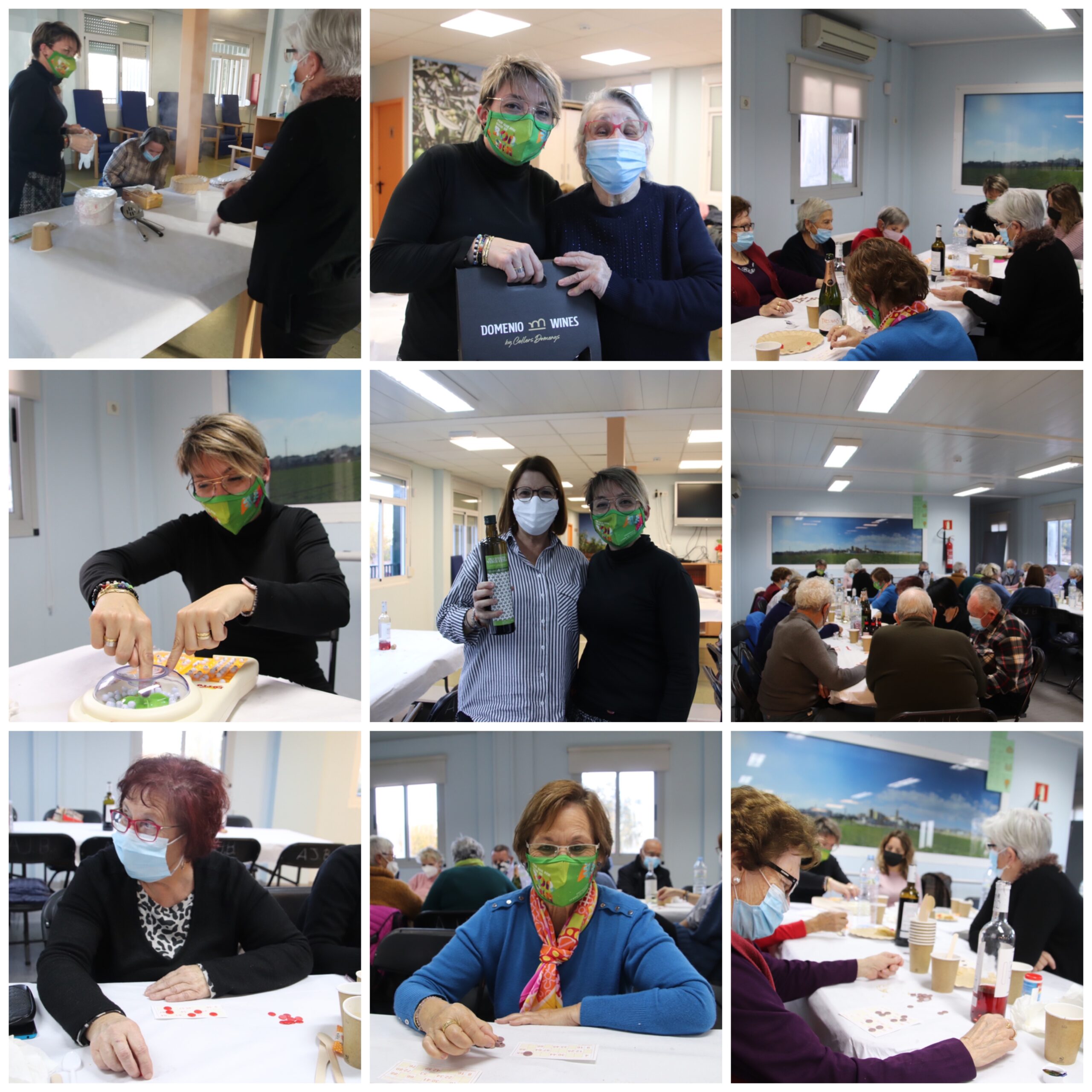 El voluntariat del Servei Bon Dia i els usuaris del servei han compartit un dinar aquest migdia, complint totes les mesures per la COVID-19. L’ha trobada s’ha celebrat al Racó de la Gent Gran, on els assistents han pogut menjar fideuada i compartir experiències i bons moments. Després de les postres i els cafés han compartit una estona jugant al bingo i, els afortunats, han guanyat productes locals: vi, cava o oli de Cellers Domenys.