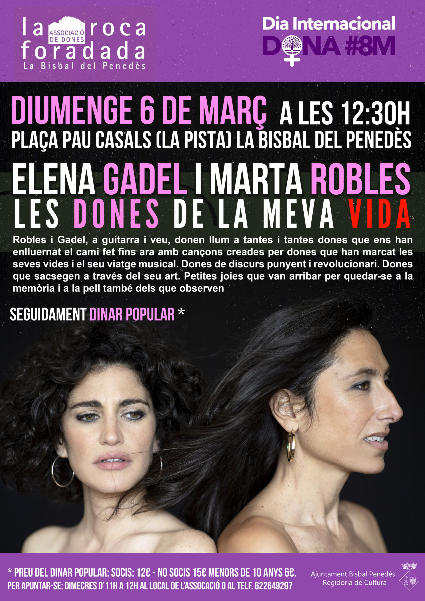 Actes amb motiu del 8M: Concert de veu i guitarra amb Elena Gadel i Marta Robles i dinar organitzat des de l’Associació de Dones La Roca Fodadada