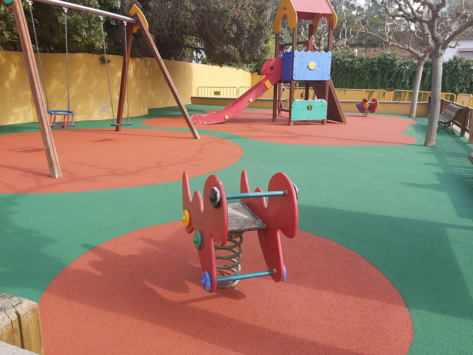 Una altra de les accions que ja s’han dut a terme és la instal·lació de cautxú al terra del parc infantil de l’Esplai.