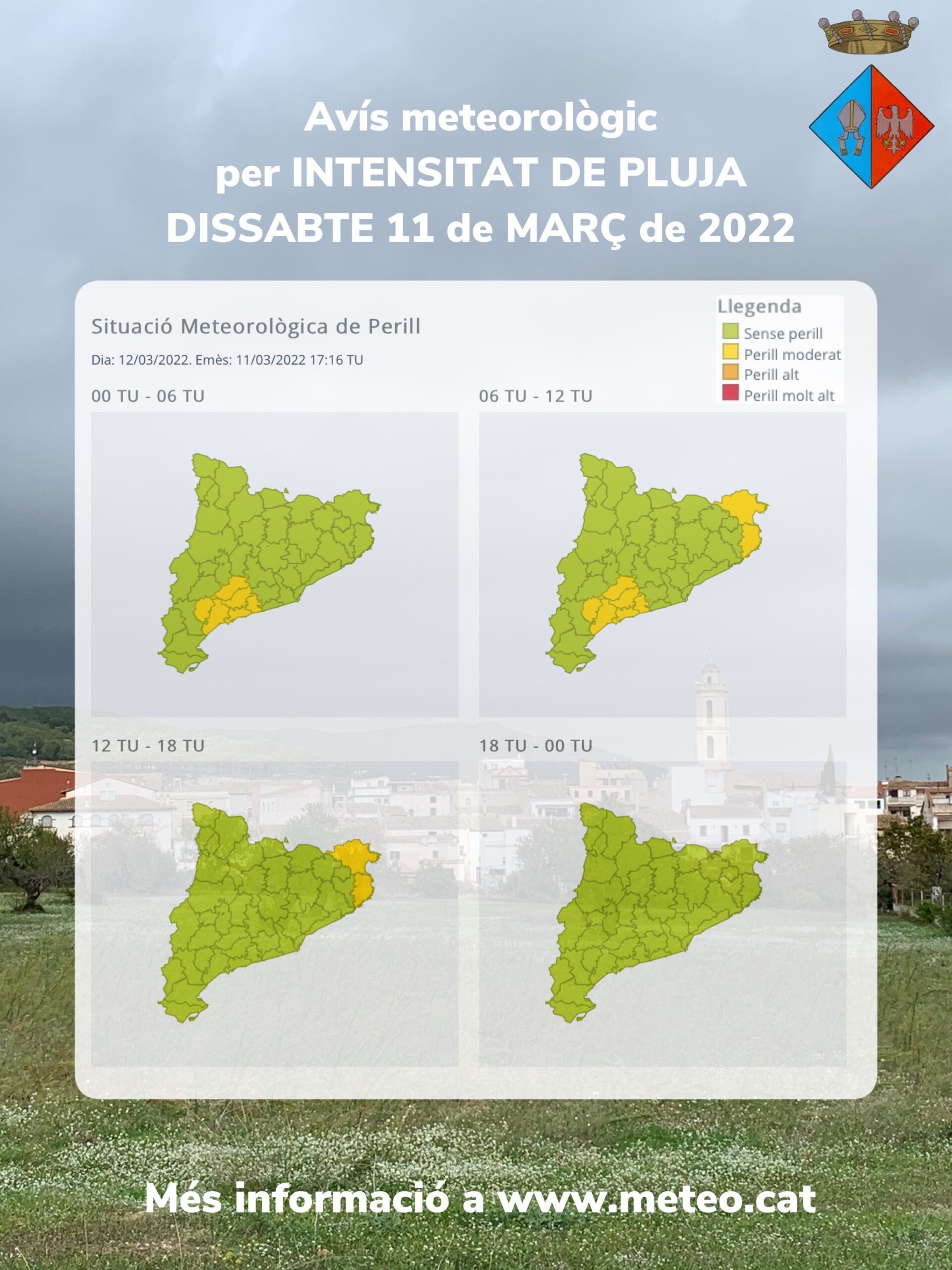 Avís per intensitat de pluja per avui divendres a la nit i demà dissabte al matí