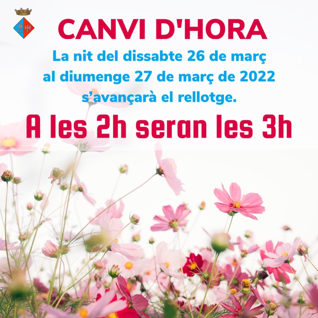 El proper cap de setmana es canvia l’hora. La matinada del dissabte 26 al diumenge 27 de març, a les 2h seran les 3h.