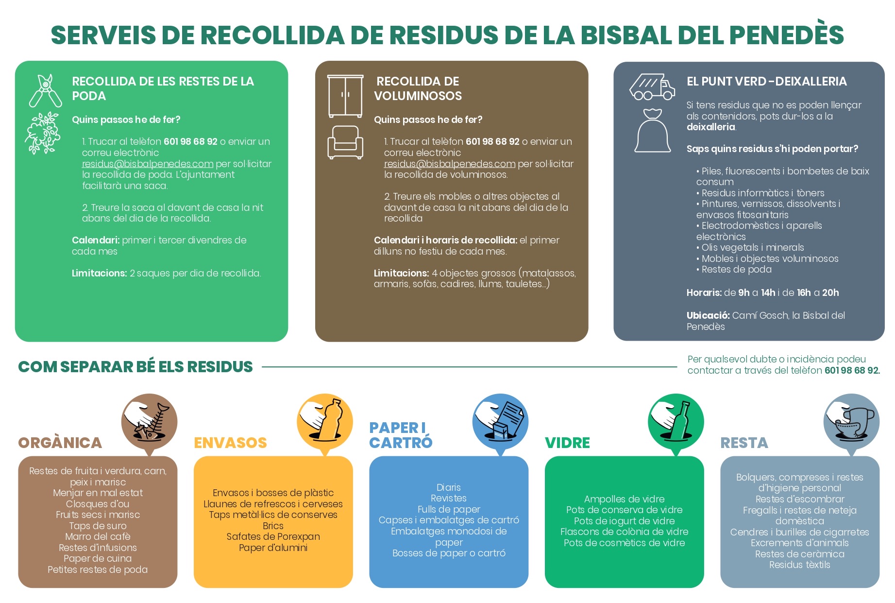 Aprovechamos esta jornada para recordaros los distintos servicios de recogida de residuos de la Bisbal y cómo separar bien los residuos.
