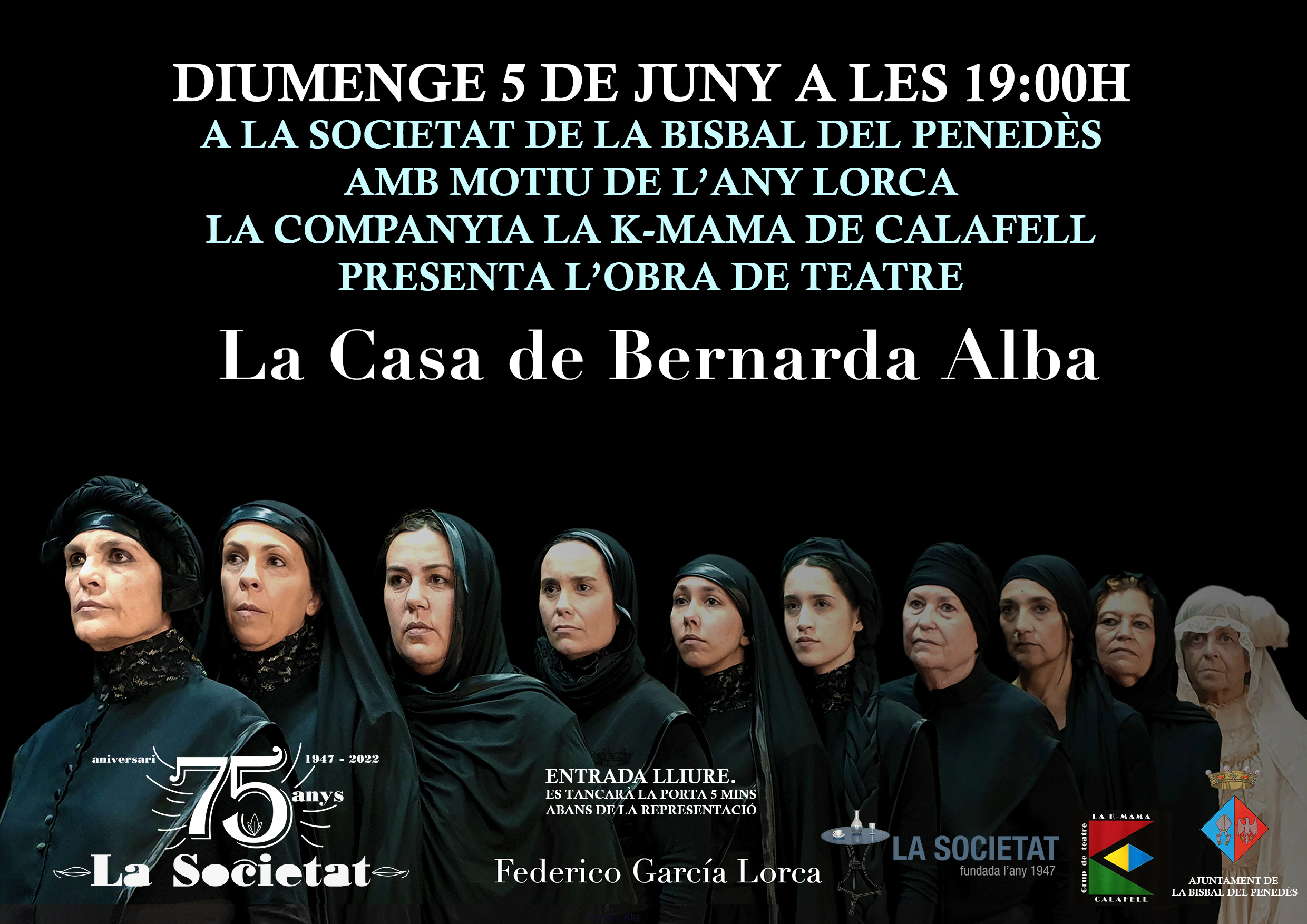El diumenge 5 de juny la companyia La K-mama representarà “La Casa de Bernarda Alba” a la Societat amb motiu de l’Any Lorca