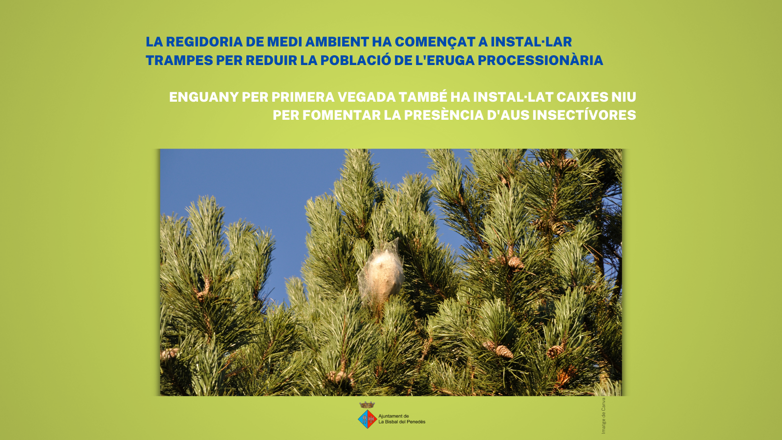 La Regidoria de Medi Ambient ha començat a instal·lar trampes per reduir la població de l’eruga processionària i també ha instal·lat caixes niu per fomentar la presència d’aus insectívores