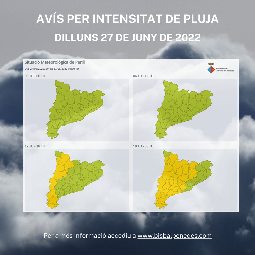Avís per intensitat de pluja per al dilluns 27 de juny de 2022