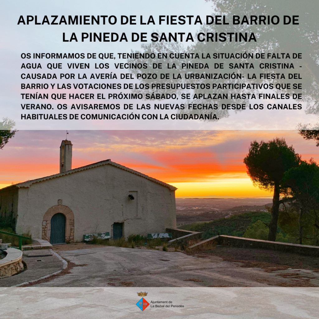 Se aplaza la celebración de la Fiesta del barrio de la Pineda de Santa Cristina y la votación de los presupuestos participativos en este barrio.
