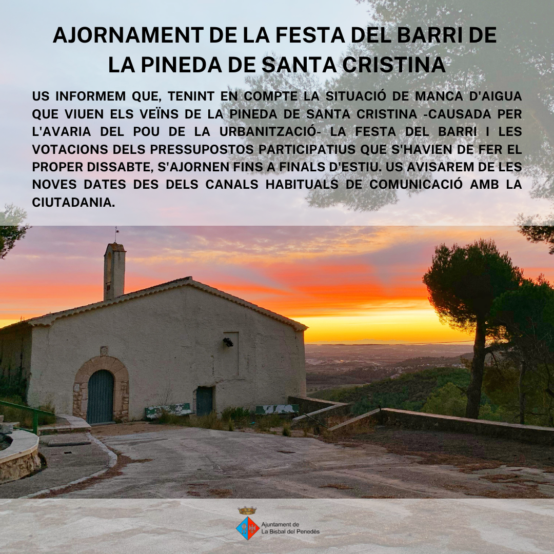 Se aplaza la celebración de la Fiesta del barrio de la Pineda de Santa Cristina y la votación de los presupuestos participativos en este barrio.