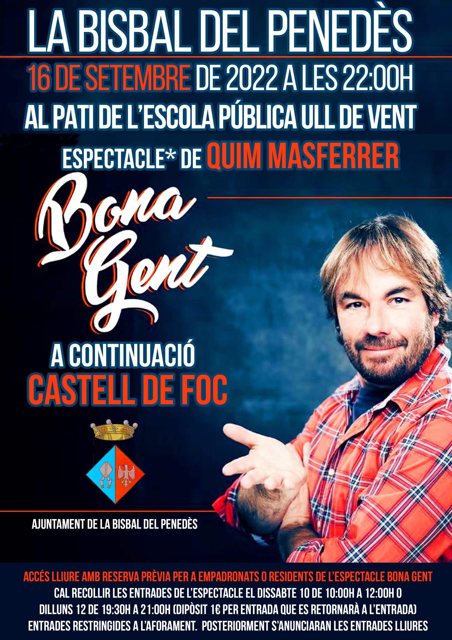 El divendres 16 de setembre: espectacle “Bona Gent” amb Quim Masferrer i castell de foc a la Bisbal del Penedès