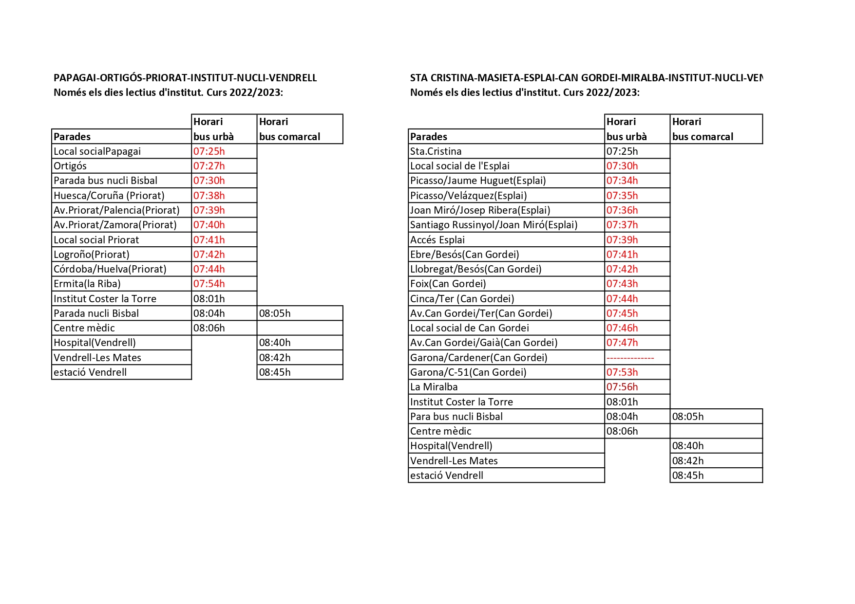 - Se modifican los horarios de la línea del Papagai, L’Ortigós e instituto.