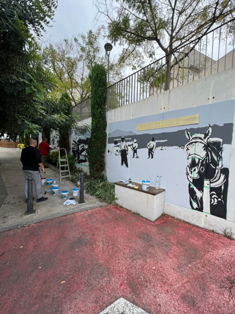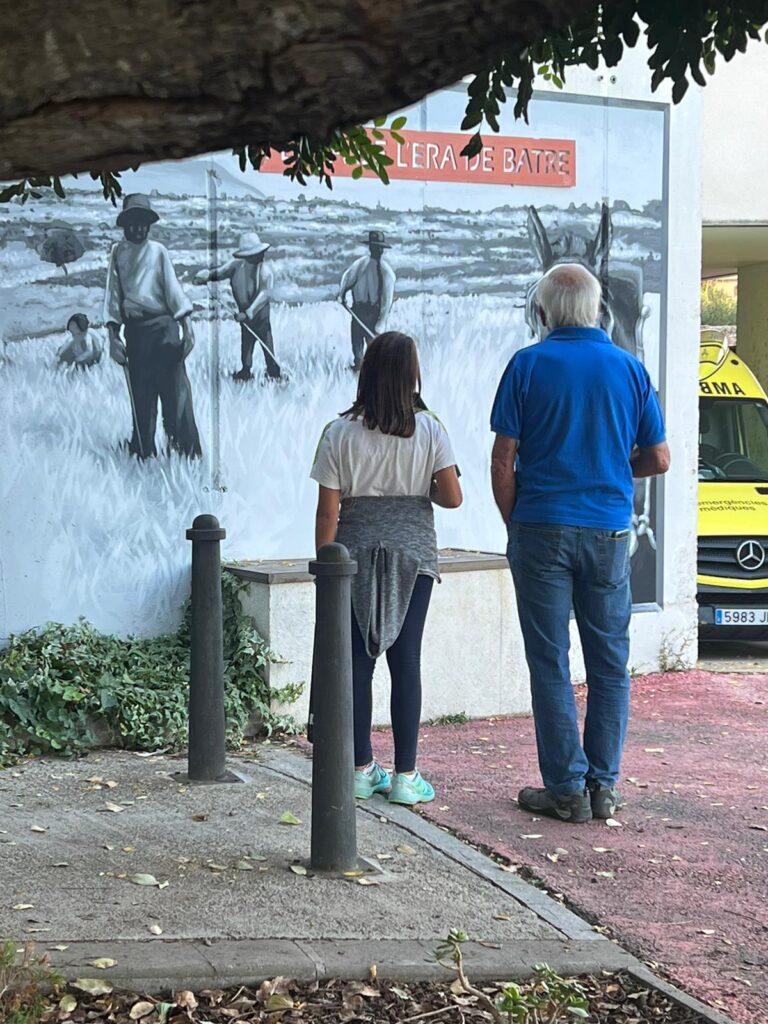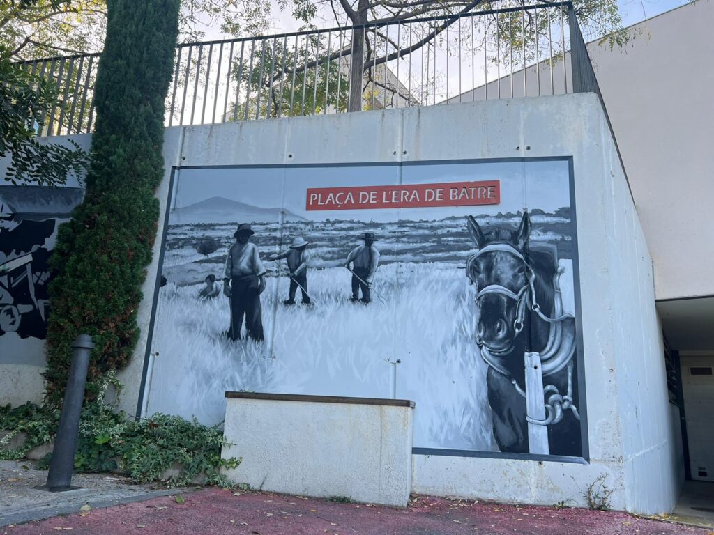 Aquest dimarts s’ha començat a treballar en l’execució d’un mural de 14x2m a la plaça de l’Era de Batre