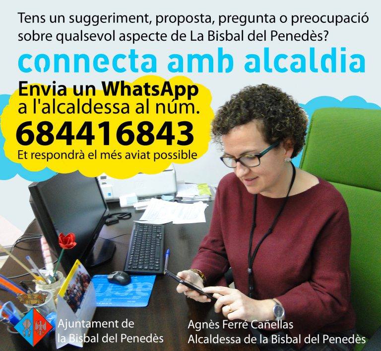 L’alcaldessa de la Bisbal del Penedès -Agnès Ferré- continua atenent les vostres consultes, idees, propostes, suggeriments o preocupacions a través de Whatsapp