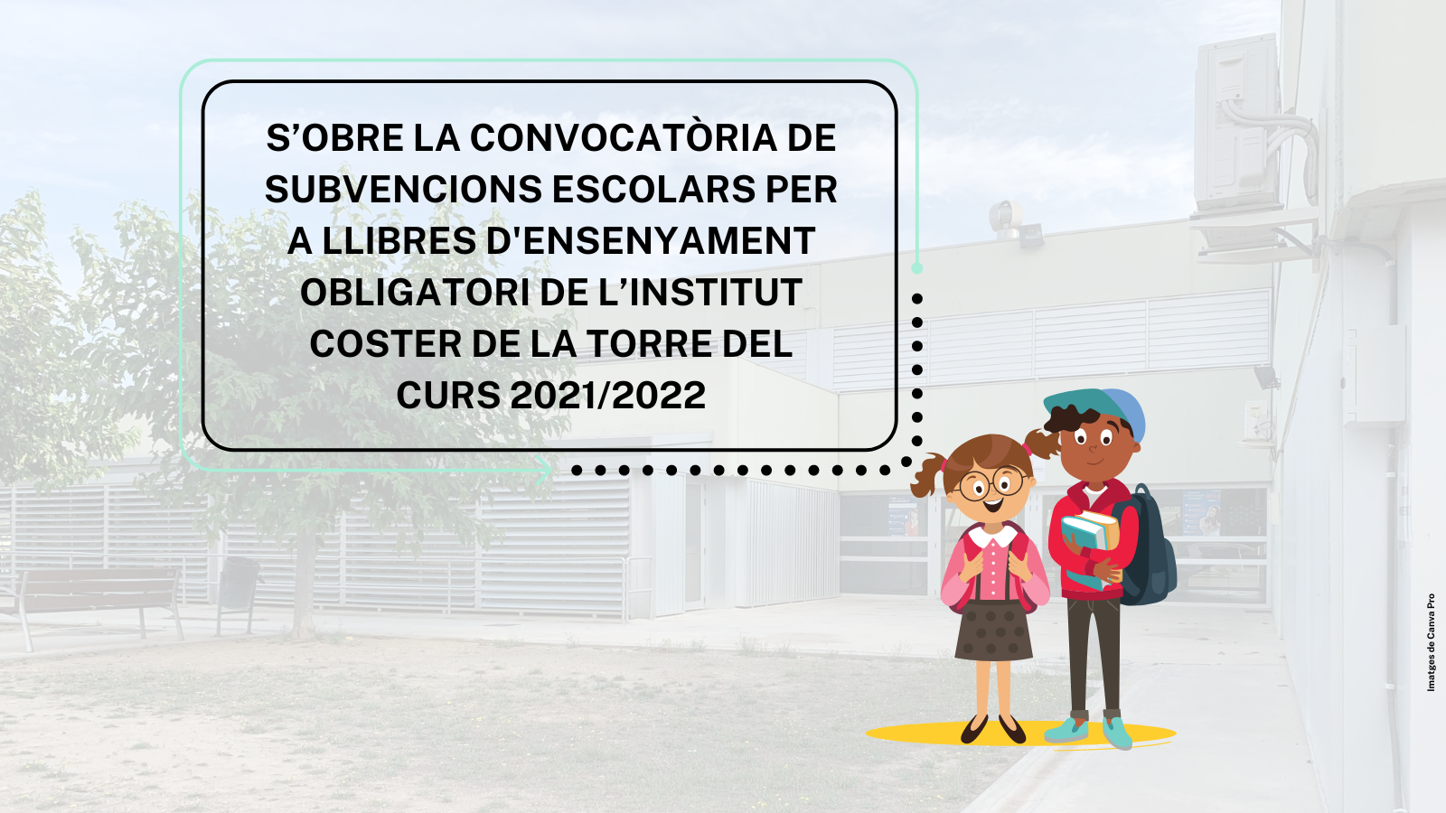 CASTELLANO | El Ayuntamiento de la Bisbal del Penedès os informa de que, desde hoy miércoles 16 de noviembre hasta el próximo 15 de diciembre, se podrá presentar la documentación para solicitar la subvención del curso 2021/2022 para libros del Institut Coster de la Torre de los alumnos de educación secundaria obligatoria.