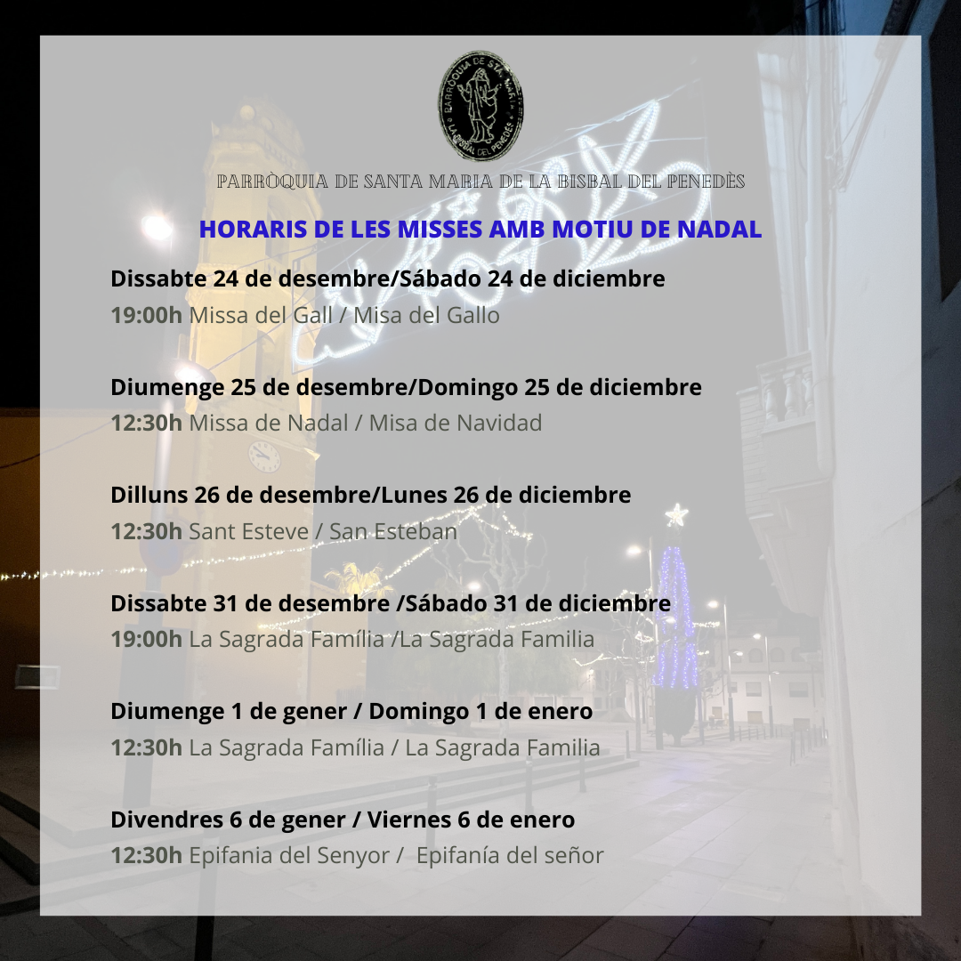 Horari de les misses de la Parròquia de Santa Maria amb motiu de les festes de Nadal