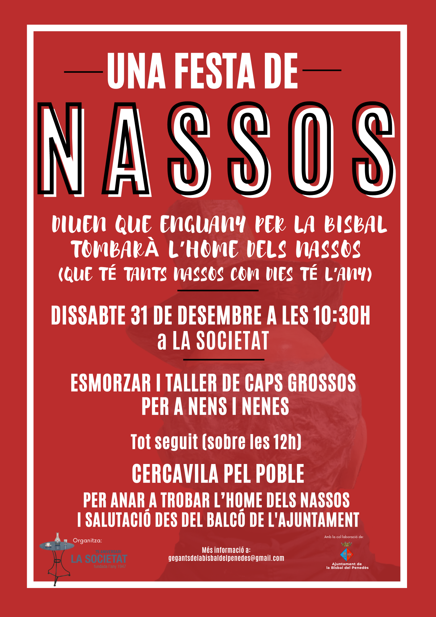 -A les 12:00h es farà una cercavila pels carrers del nucli per anar a trobar l’Home dels Nassos. El recorregut acabarà amb una salutació des de l’Ajuntament. No us ho perdeu!