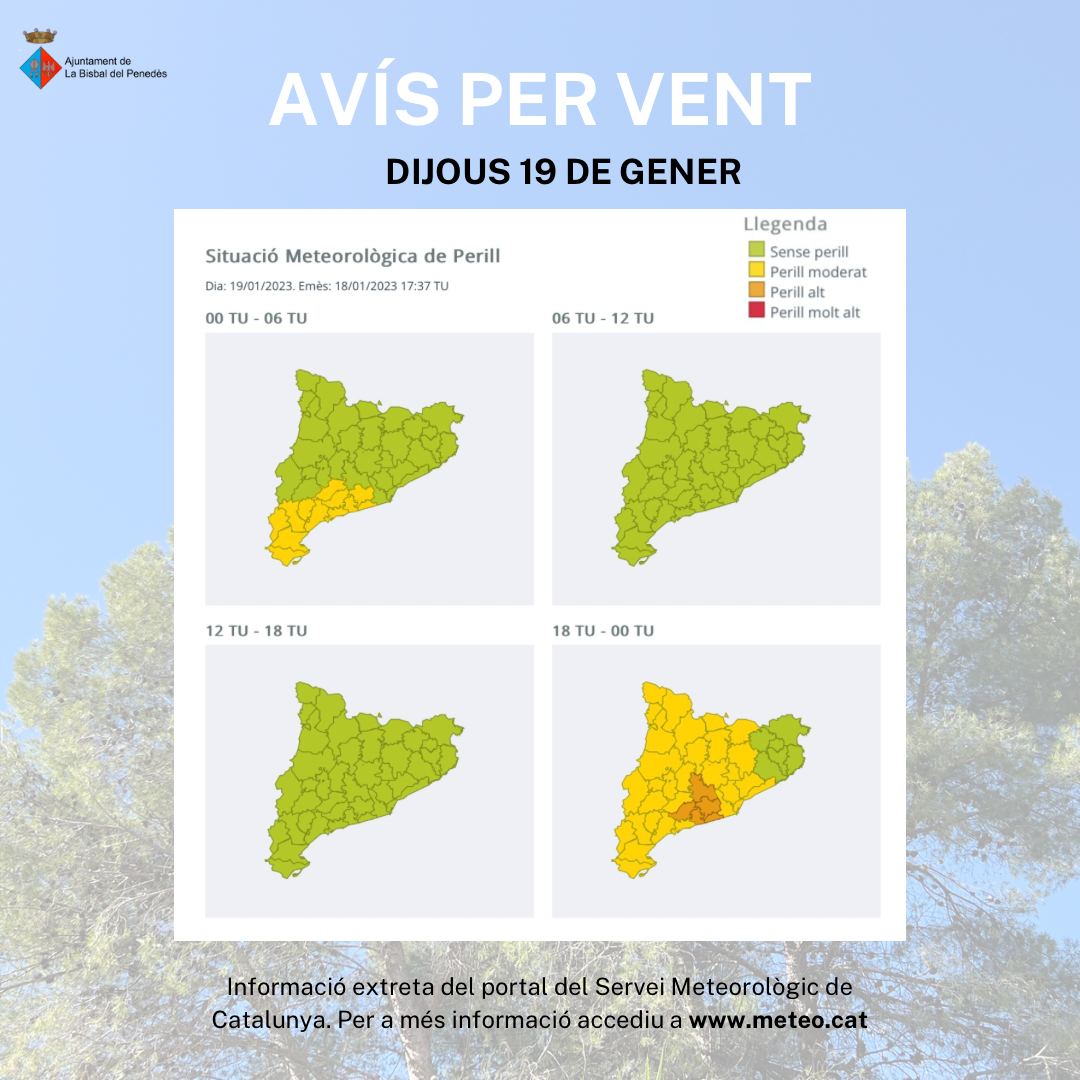 Us adjuntem les imatges actualitzades dels avisos per vent per aquest dijous i aquest divendres. Extremeu les precaucions.