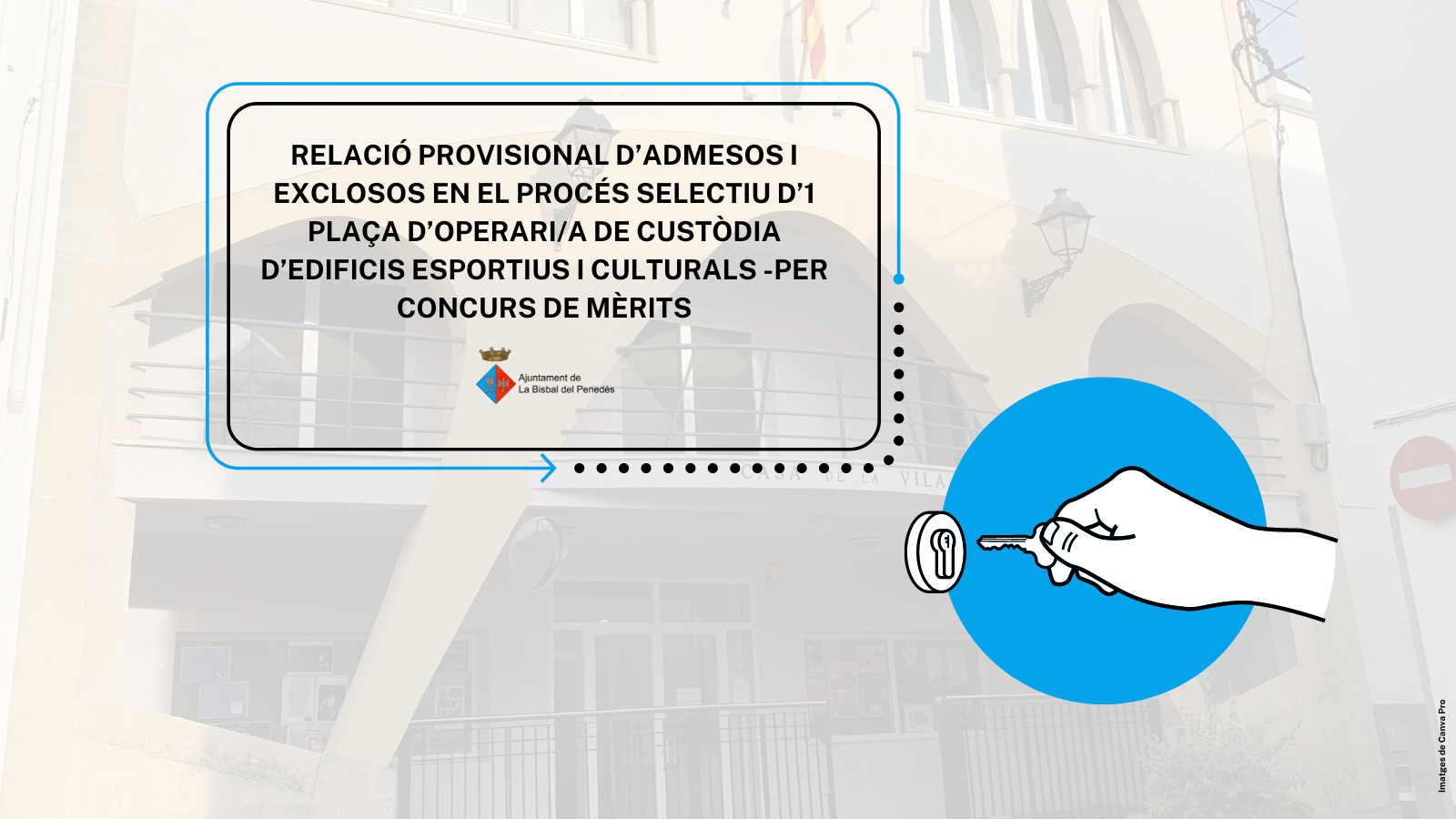 Relació provisional d’admesos i exclosos en el procés selectiu d’1 plaça d’operari/a de custòdia d’edificis esportius i culturals -per concurs de mèrits