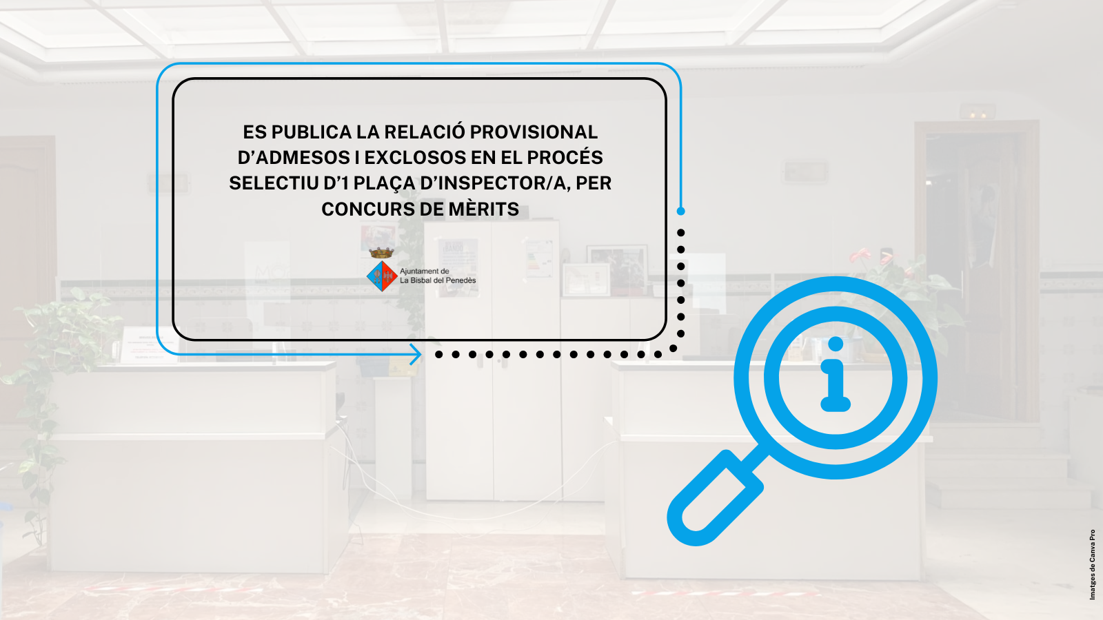 Es publica la relació provisional d’admesos i exclosos en el procés selectiu d’1 plaça d’inspector/a, per concurs de mèrits