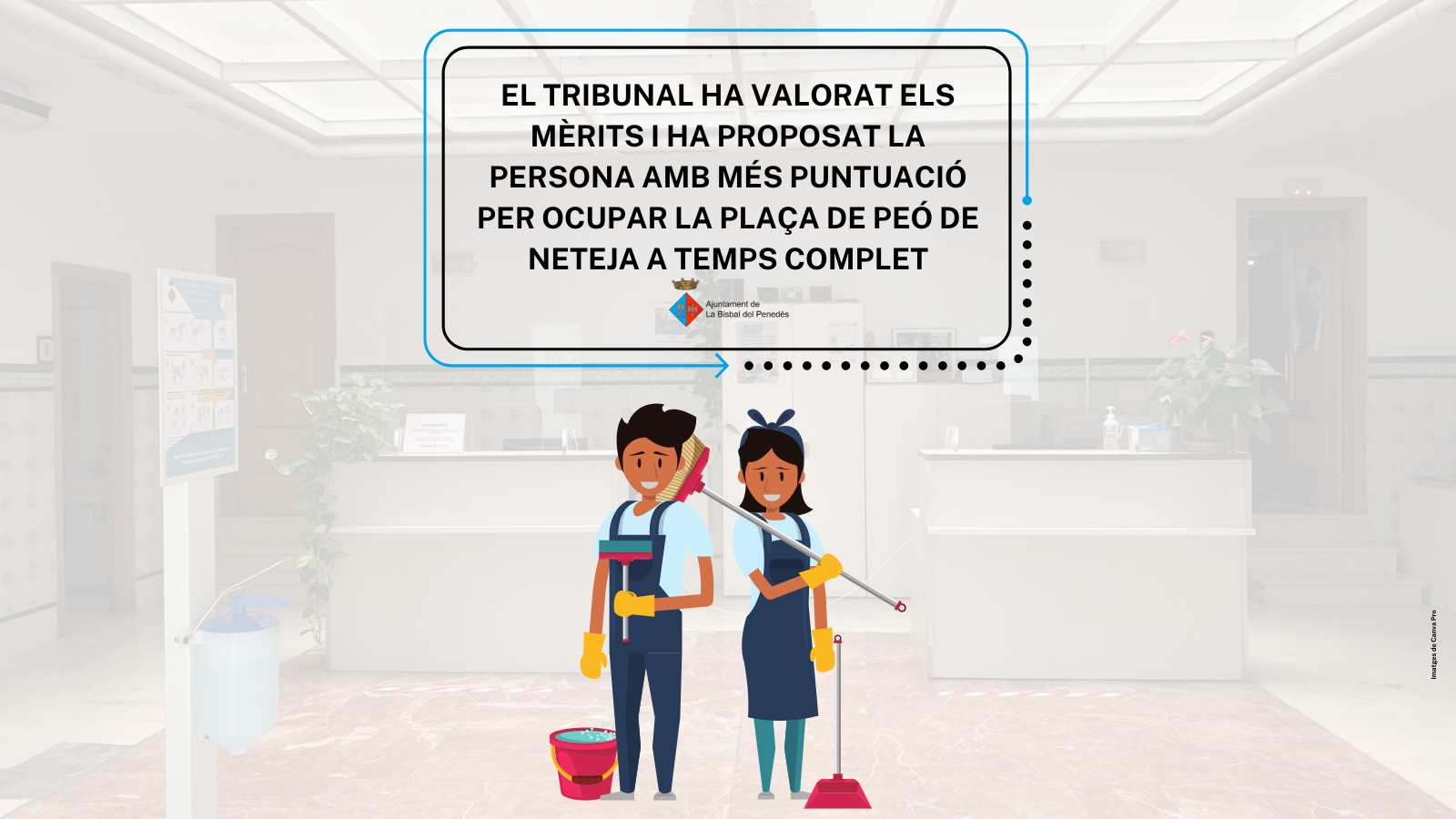 El Tribunal ha valorat els mèrits i ha proposat la persona amb més puntuació per ocupar la plaça de peó de neteja a temps complet
