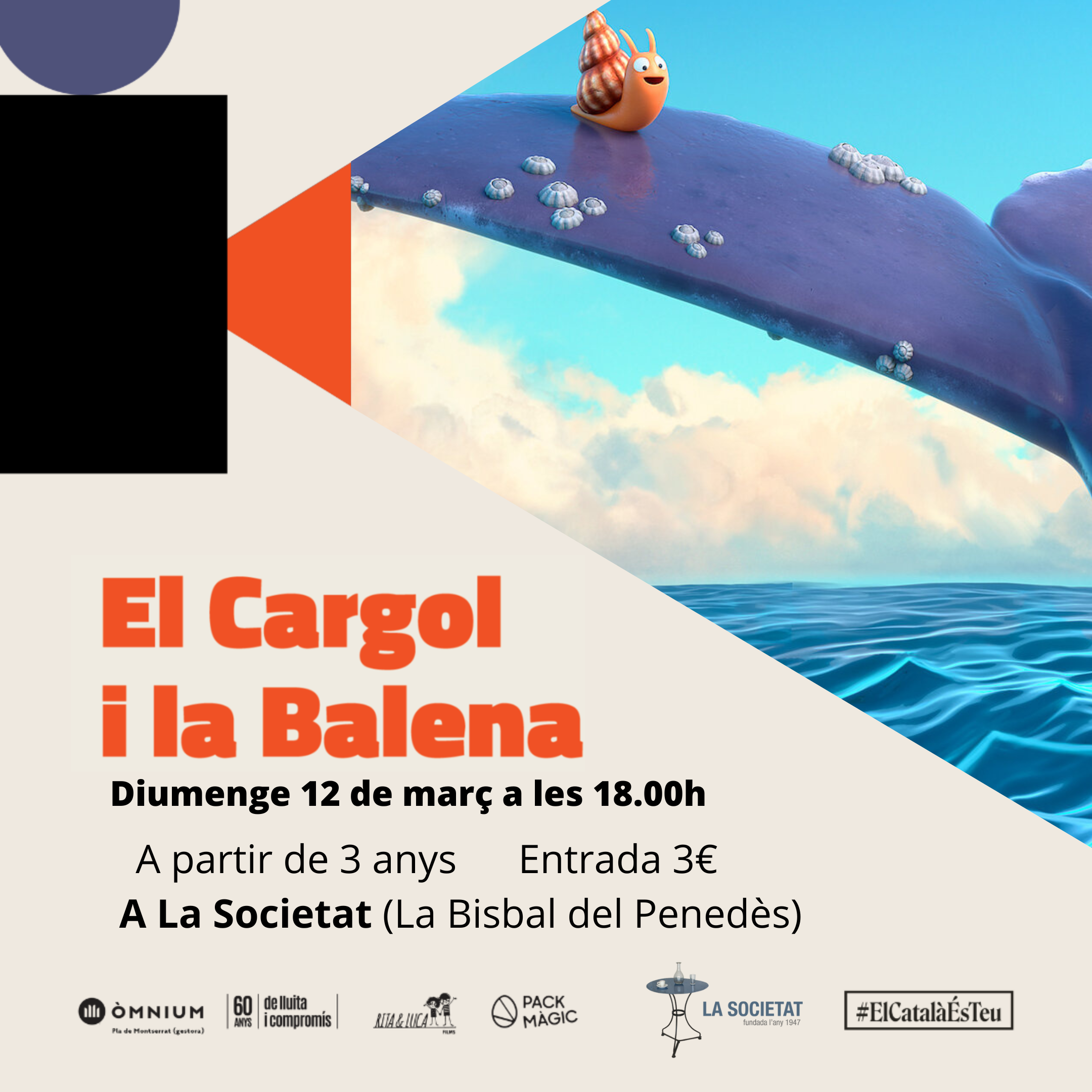 Tarda de cinema per a famílies a la Societat – El diumenge 12 de març torna el ‘Cinexic’ amb ‘El Cargol i la Balena’
